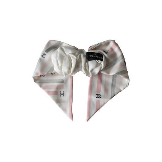 Chanel CC Silk Interlocking Bow Hair Barrette White