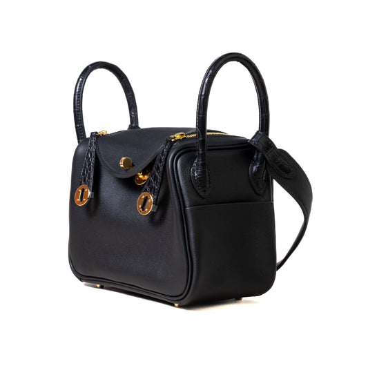Hermes Mini Lindy Touch Matt Gold Hardware Noir