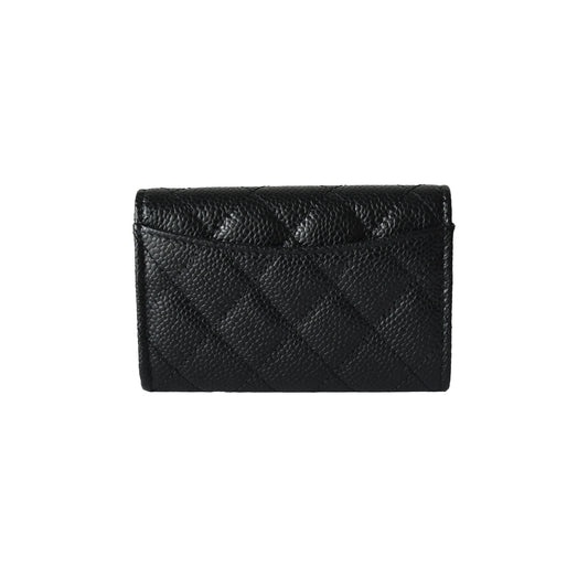 Chanel CC Caviar Quilted Flap Card Holder Wallet Gold Hardware Black