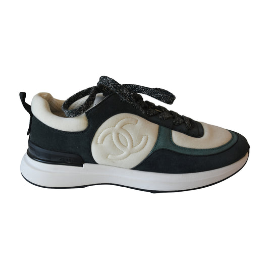 Chanel Interlocking CC Logo Suede Chunky Sneakers Ivory