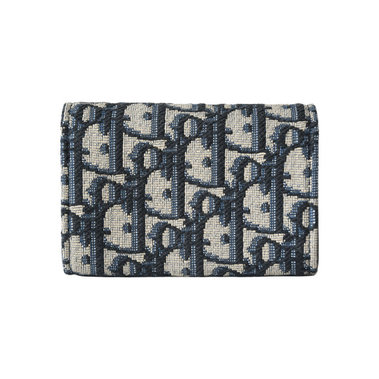 Dior Oblique Bow Glycine Oblique Jacquard With Bow Wallet Blue