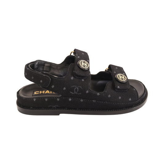 Chanel CC Printed Dad Sandals Black Denim