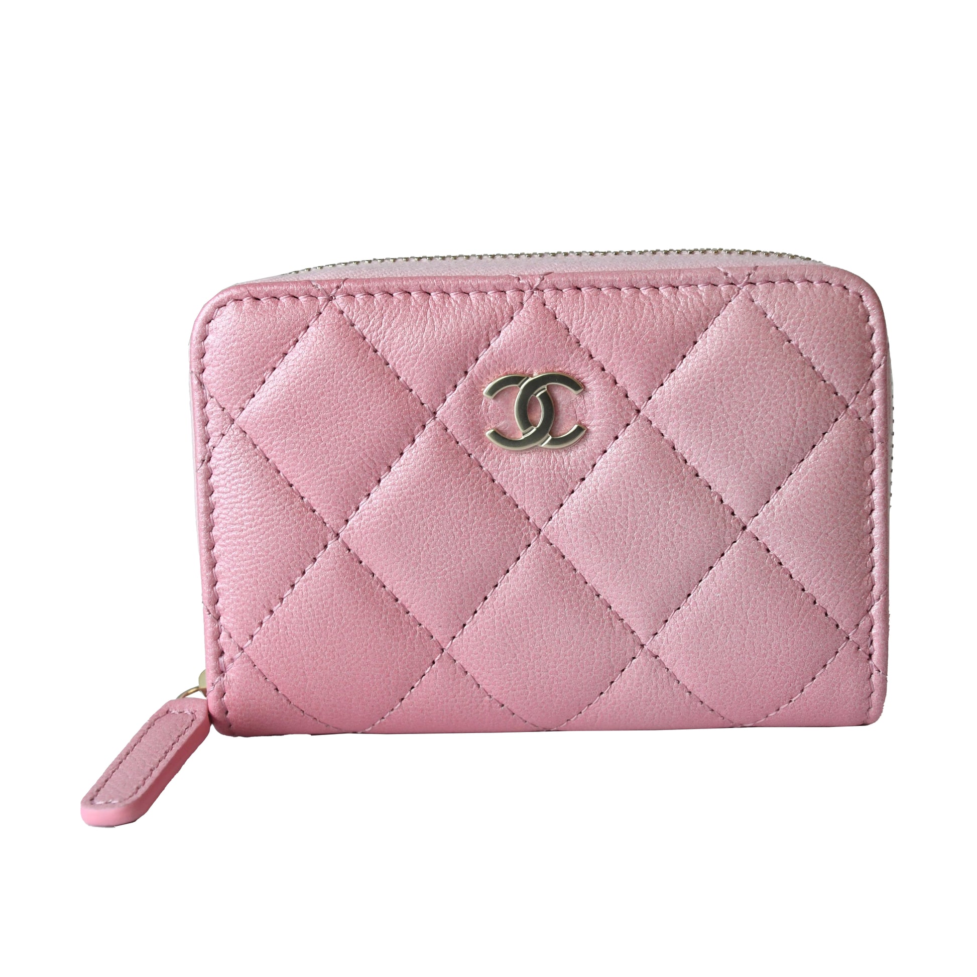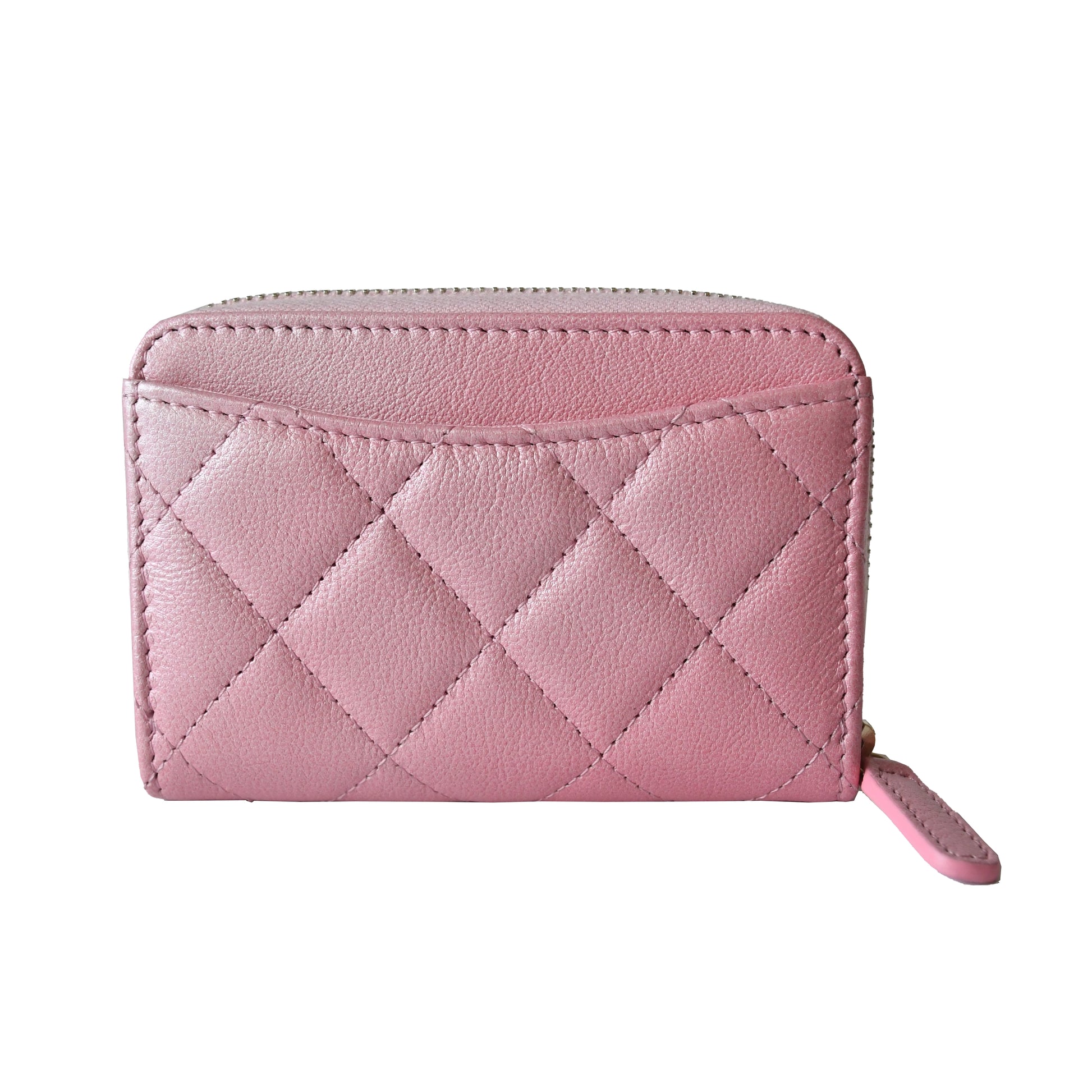 Chanel Iridescent Caviar Quilted Zip Coin Purse Wallet Pink