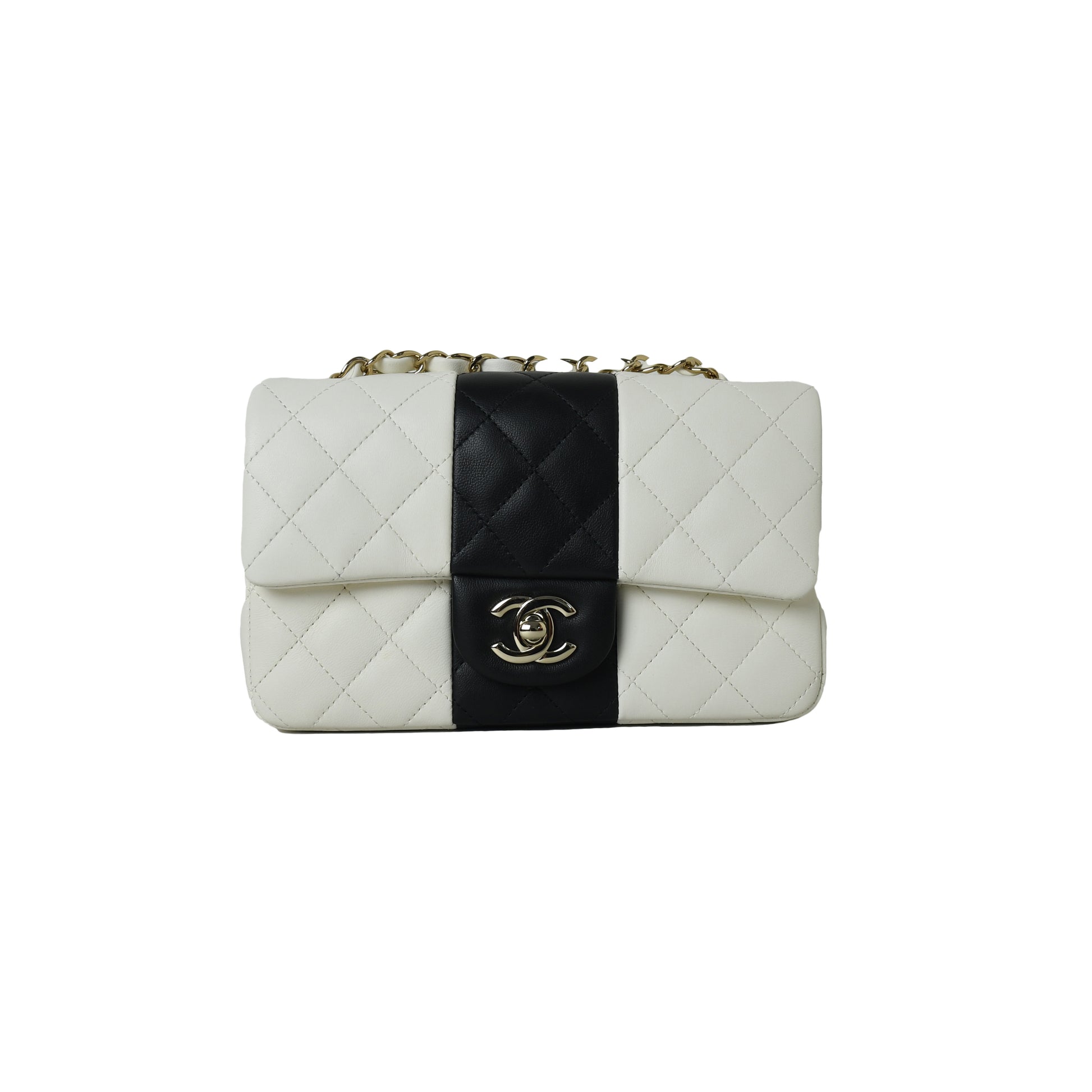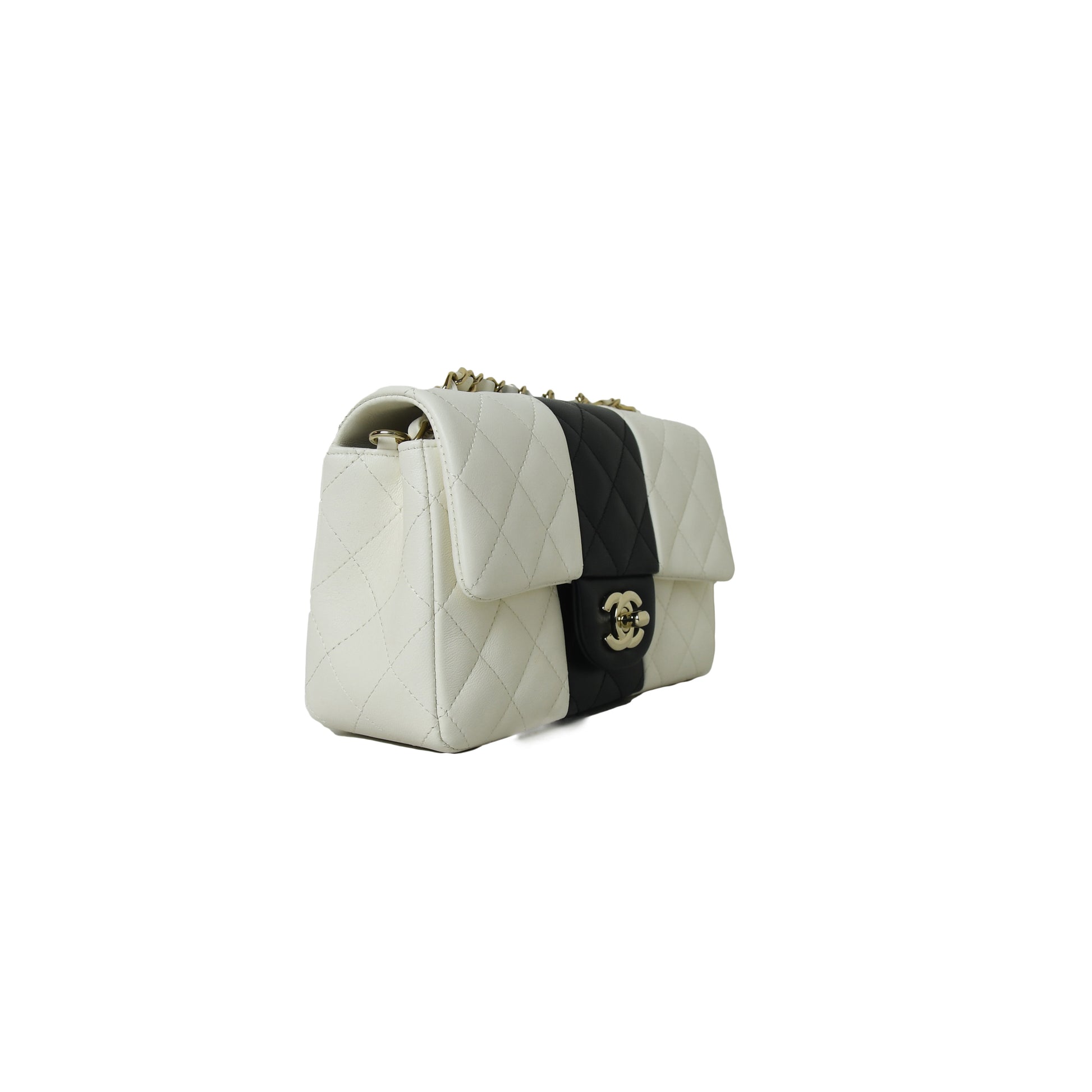 Chanel Mini Flap Lambskin Bag White Black Stripe