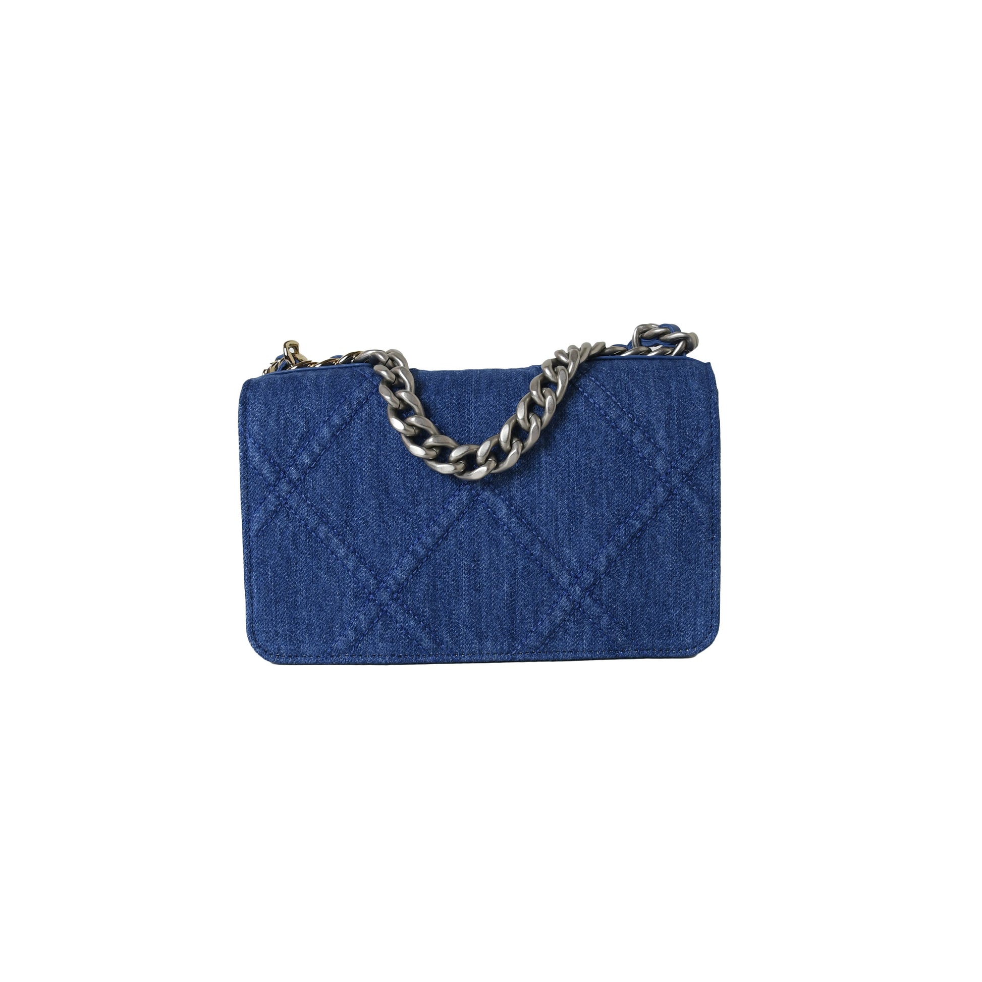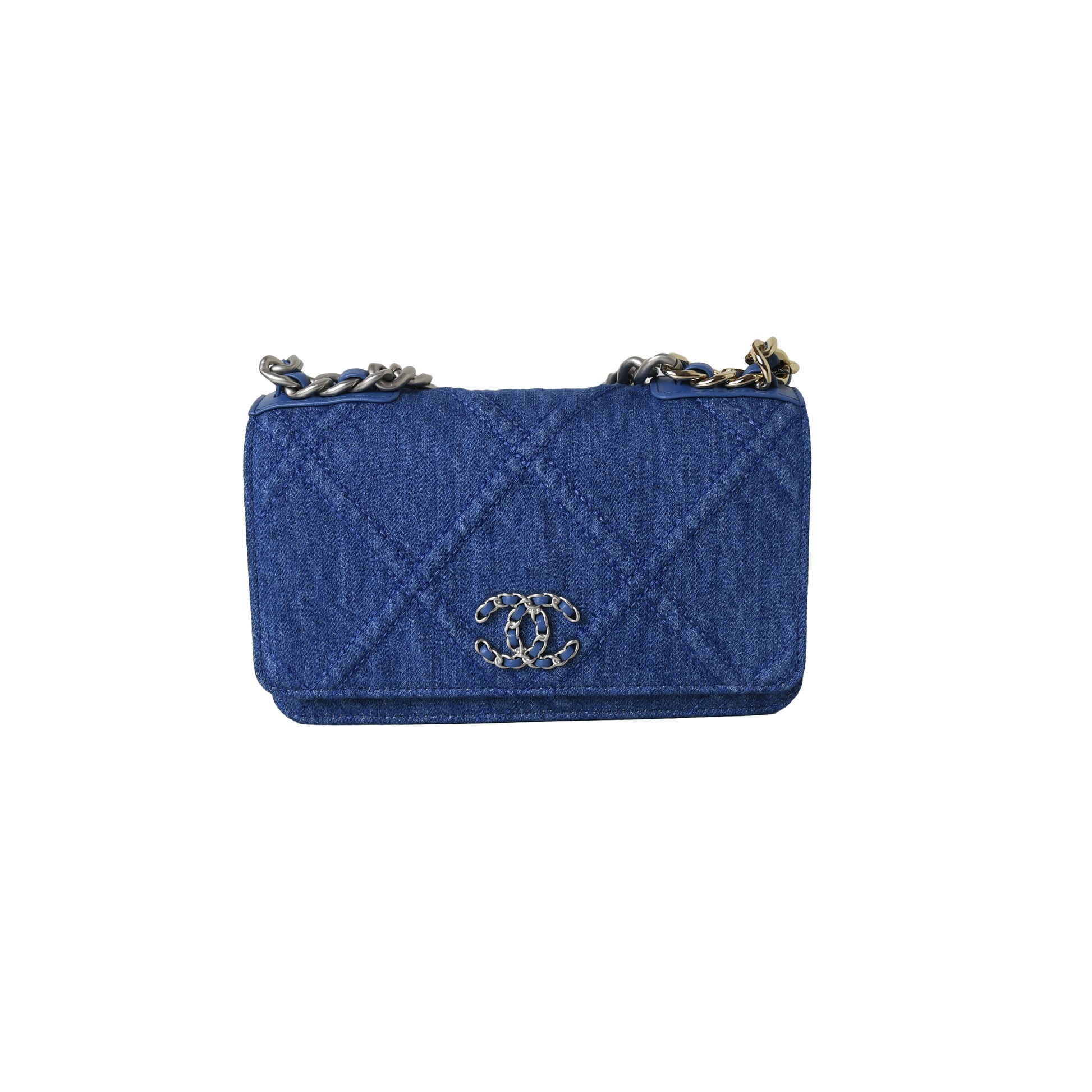 Chanel Quilted Wallet On Chain 19 Silver Denim Blue