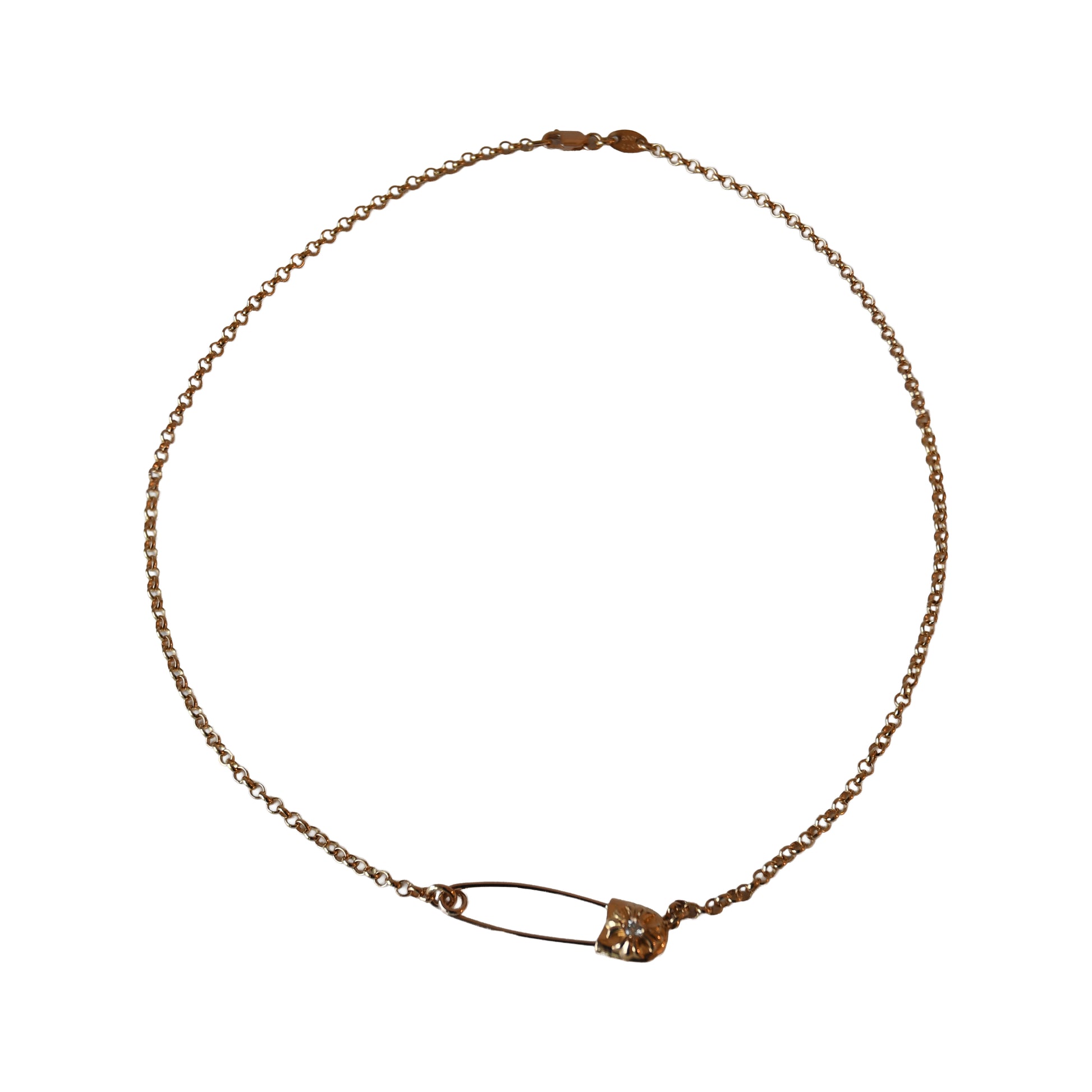 Chrome Hearts 22k Gold Diamond Safety Pin Clip Roll Chain Necklace Gold