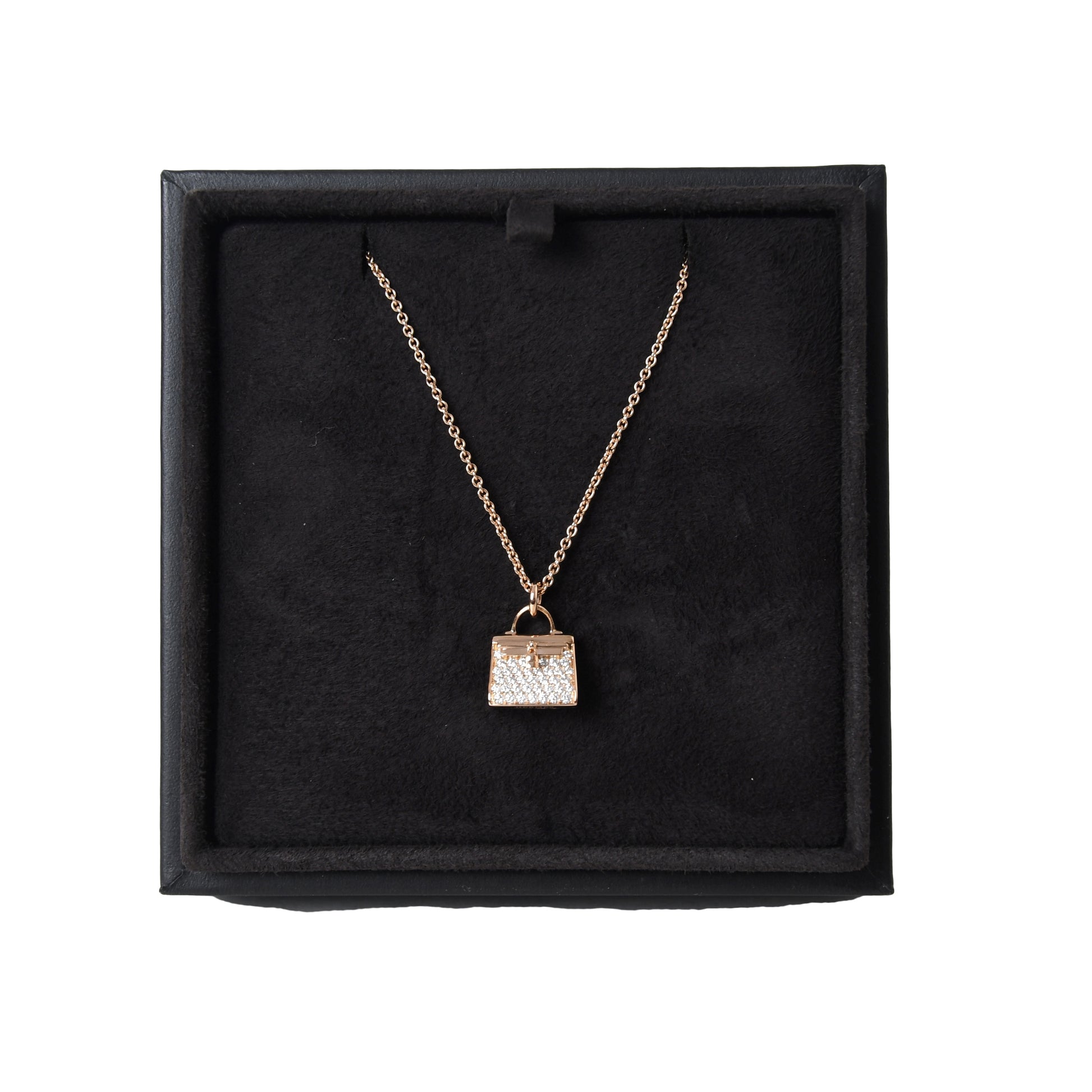 Hermes Kelly Amulette Diamond Pendant Necklace Rose Gold